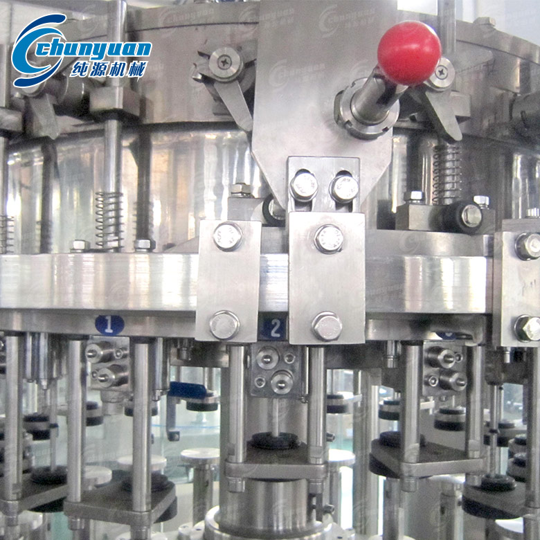 气泡水灌装设备选用优质的SUS304材料制作,主关件部件采用数控机床精密加工,气泡水含汽饮料灌装机械采用先进光电检测各部件的运行状况,具有无瓶不灌装,无瓶不送盖,自动化程度高。