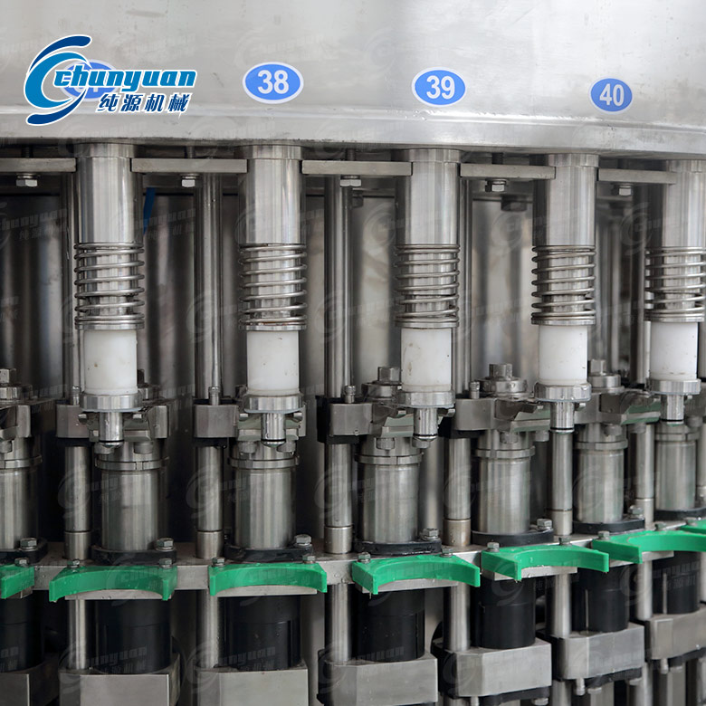 纯源机械厂家生产制造的全自动纯净水灌装设备适合350-1500ml的PET瓶装水的灌装生产,根据物料水位高度主动控制,过程全自动生产完成。全自动纯净水灌装设备采用卡瓶颈传动技术,实现全自动冲瓶、灌装、旋盖等工序,自动化程度高。