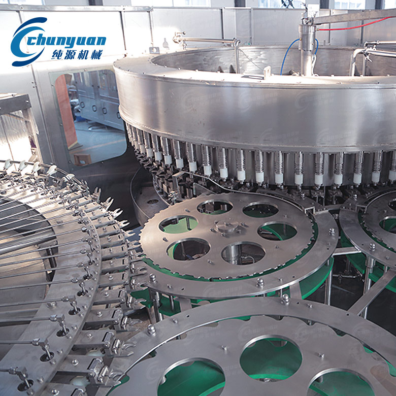 瓶装纯净水灌装机械适用于灌装350ml-1500ml等容量的瓶装纯净水,是相融合了国内外的先进技术,再结合纯源机械多年以来的研发经验,自行研发而成的全自动洗瓶、灌装、旋盖三合一纯净水灌装机。