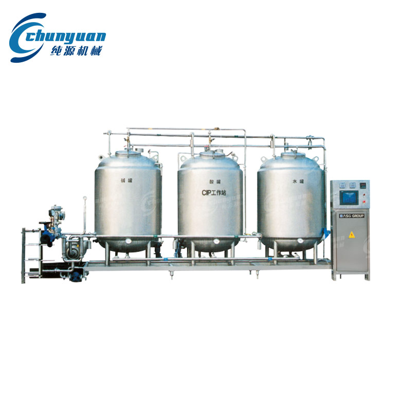 纯源机械厂家供应的自动CIP清洗系统俗称就地清洗系统,被广泛的用于饮料、乳品、果汁、果浆、果酱、酒类等机械化程度较高的食品饮料生产企业中。就地清洗简称CIP,又称清洗定位或定位清洗。就地清洗是指不用拆开或移动装置,即采用高温、高浓度的洗净液,对设备装置加以强力作用,把与食品的接触面洗净,用于卫生级别要求较严格的生产设备的清洗、净化。