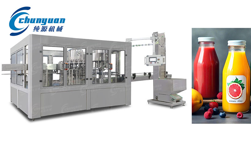 一条完整的原果汁饮料生产线包括纯水生产系统、原果汁压榨、过滤、配料、均质、脱气、杀菌系统、全自动吹瓶机、空瓶气力输送、果汁饮料热灌装机、自动封盖机、瓶盖消毒设备......