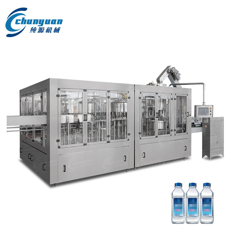 纯源机械厂家制造供应的苏打水饮料机械主要用于不含气苏打水、纯净水、矿泉水等不含气饮料的灌装。