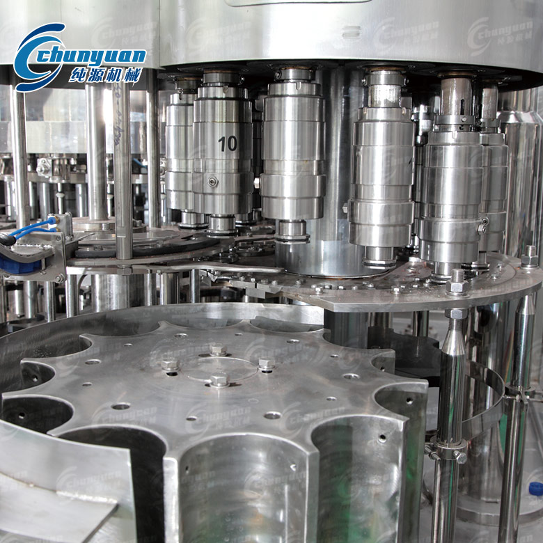 纯源机械厂家生产的含气饮料灌装机械采用不锈钢材料制成。含气饮料设备具有结构合理、工艺先进、操作方便、适用范围广等特点,是中小型饮料厂家理想的生产流水线机组。