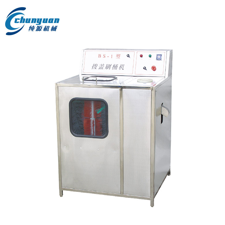 全自动外刷桶机由不锈钢机架、封板(不锈钢〉、主旋转毛刷、毛刷调速电机、拨轮调速电机、捅底部旋转毛刷、拨轮结构、 冲洗水泵、喷淋室等组成。全自动外刷桶机采用优质不锈钢制作,耐腐蚀,易清洗。主要气路原件均采用台湾亚德克产品,该机结构紧凑, 工作效率高且稳定可靠,自动化程度高,操作简单。