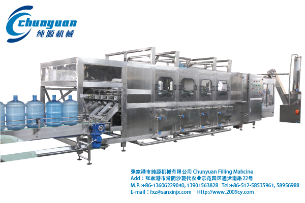 张家港市纯源机械研发制造的CYT-300系列桶装水灌装设备集自动洗瓶、自动上瓶、灌装、套盖、压盖、成品送出于一体。桶装水灌装设备适用于灌装3加仑、5加仑水桶的全......